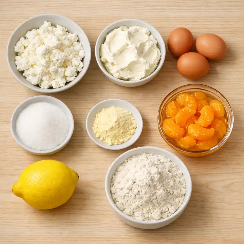 Bevor du startest, lohnt es sich, alle Zutaten griffbereit zu haben. So arbeitest du ruhiger und vermeidest kleine Fehler. Für diese Käsekuchen Muffins mit Mandarinen brauchst du keine komplizierten Zutaten – alles ist leicht erhältlich und schnell vorbereitet.